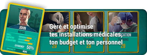 Dans cette simulation super réaliste, tu as pour objectif de former une équipe médicale compétente afin de réaliser des opérations sur tes patients et de faire de ton hôpital le meilleur centre médical au monde.